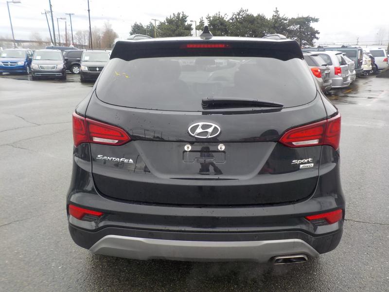 2017 Hyundai Santa Fe Sport 2.4 AWD, 2.4L, 4 cylinder, 4 door, automatic, AWD, 4-Wheel ABS, cruise control, air conditioning, AM/FM radio, CD player, power door locks, power windows, power sunroof, heated seats front and rear, reverse camera, aux input, usb input, black exterior, grey interior, leatherl.