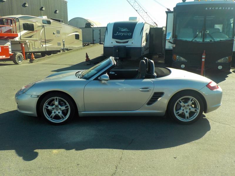 2007 Porsche Boxster Convertible, 2.7L, 6 cylinder, 2 door, manual, RWD, 4-Wheel ABS, cruise control, air conditioning, AM/FM radio, CD player, bluetooth, heated seats, power door locks, power windows, power mirrors, power sunroof, silver exterior, black interior, leather.