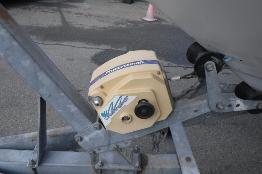 1986 Sea Ray Seville 23 Foot Cuddy Power Boat with Trailer, 6 cylinder, 4.3L Mercruiser inboard engine, seats 8, power winch, white exterior, grey interior, vinyl. Trailer Serial # 1ZE1SL227RA008986 - 1994 EZ Loader Boat Trailer