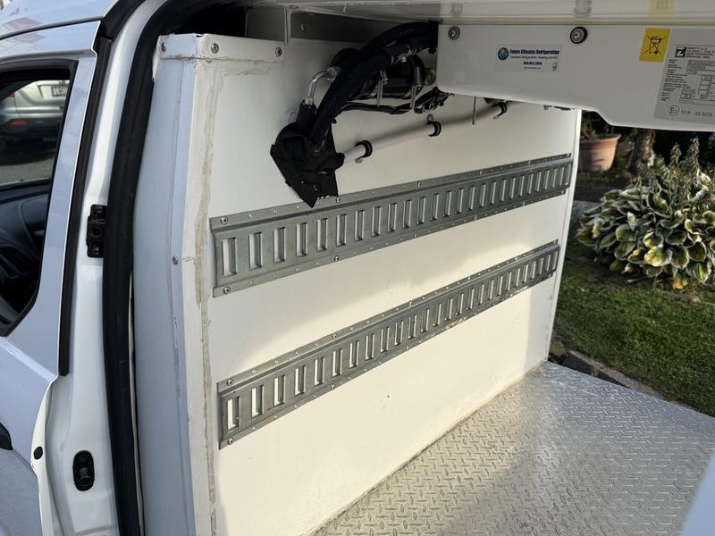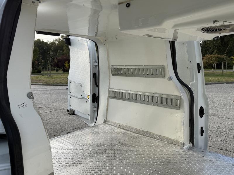 2019 Ford Transit Connect XLT reefer cargo van with Zanotti refrigeration unit and temperature controller. Powered by a 2.0L 4-cylinder engine with front-wheel drive and automatic transmission. Features include rear backup camera, front and rear parking sensors, Eco mode, auto start-stop, Bluetooth, AM/FM radio, USB and 12V inputs, cruise control, and cup holders. Finished in white with a grey cloth interior. Ideal for temperature-sensitive deliveries.
