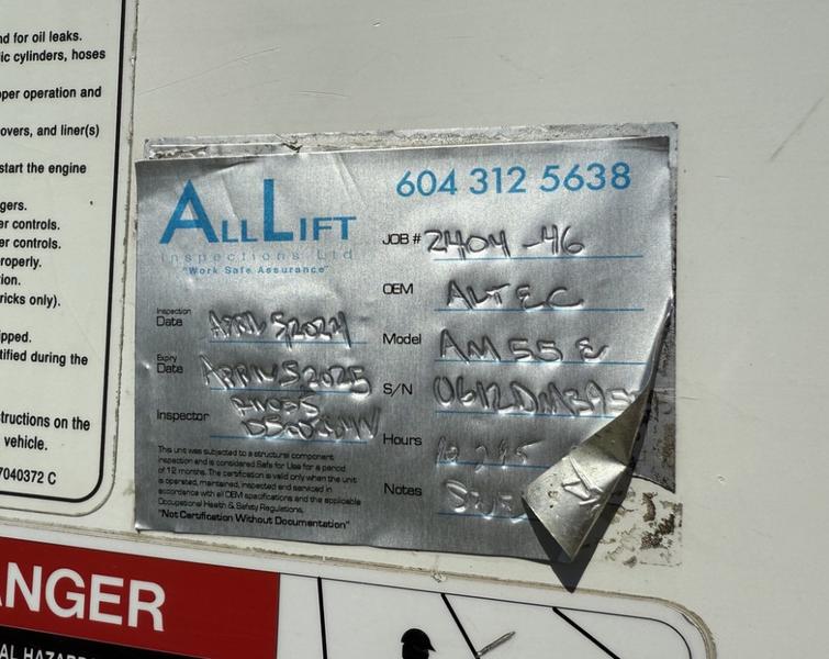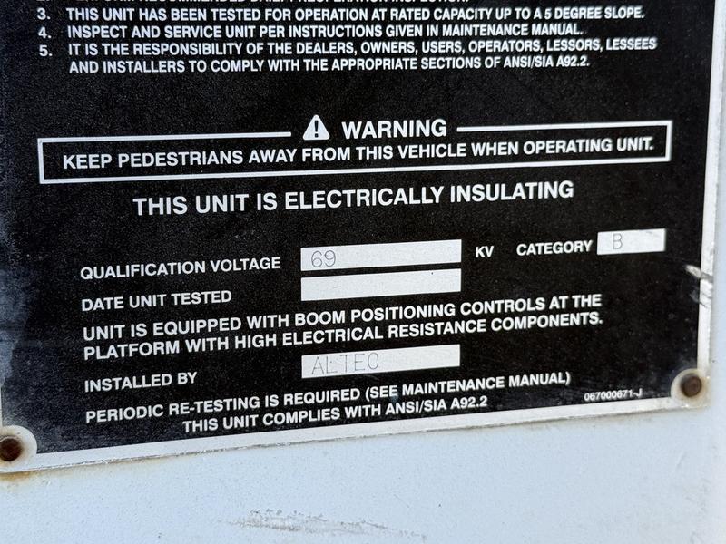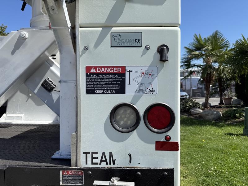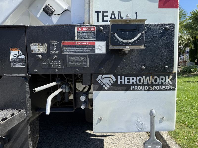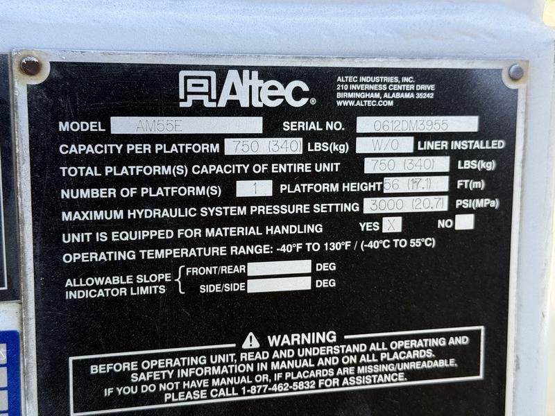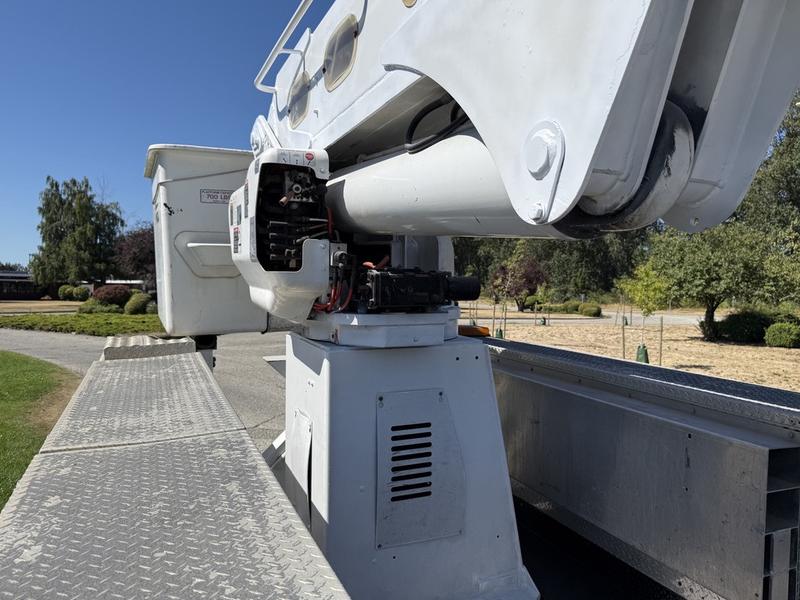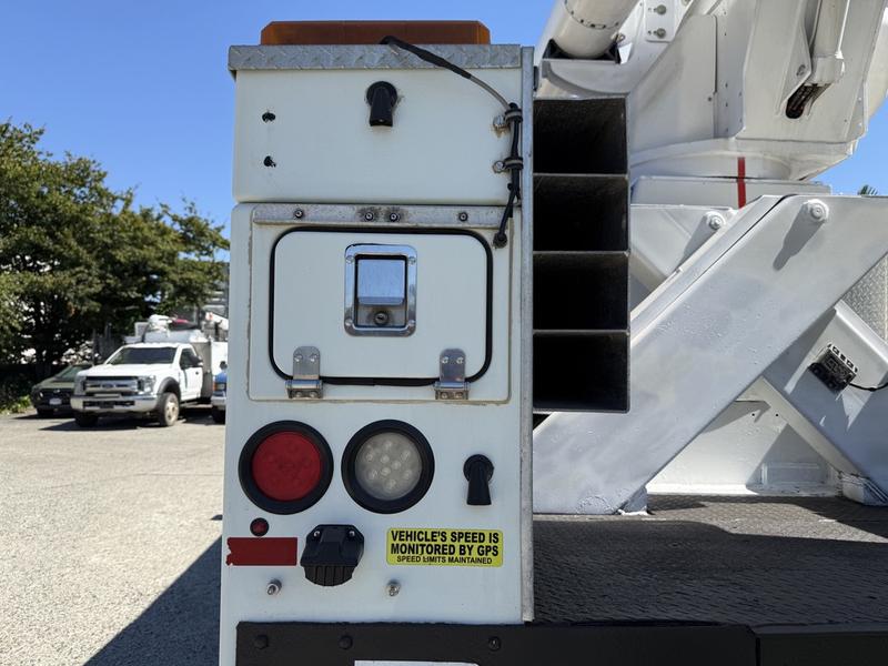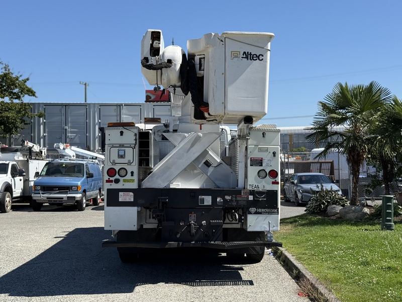 2013 International 7400 Workstar Altec Bucket Truck with Air Brakes, 9.3L, 6 cylinder, 2 door, automatic, 6X4, air conditioning, AM/FM radio, white exterior, grey interior, vinyl. GVWR 24,494 kg / 54,000 lbs, Bucket platform capacity 700 lbs, platform height 56 ft. Bucket certification valid until March 5, 2026.
