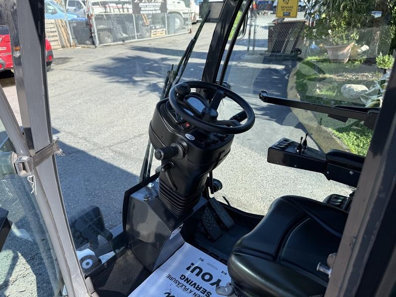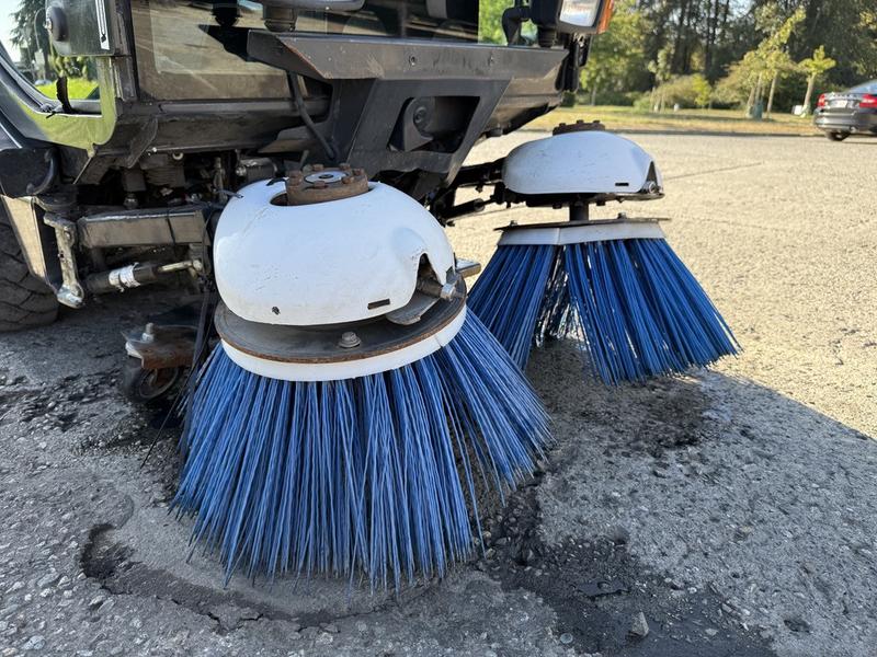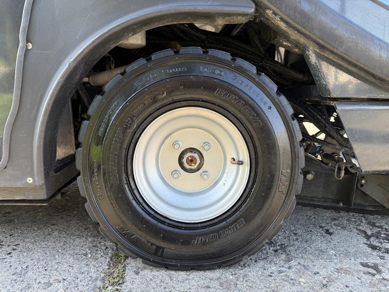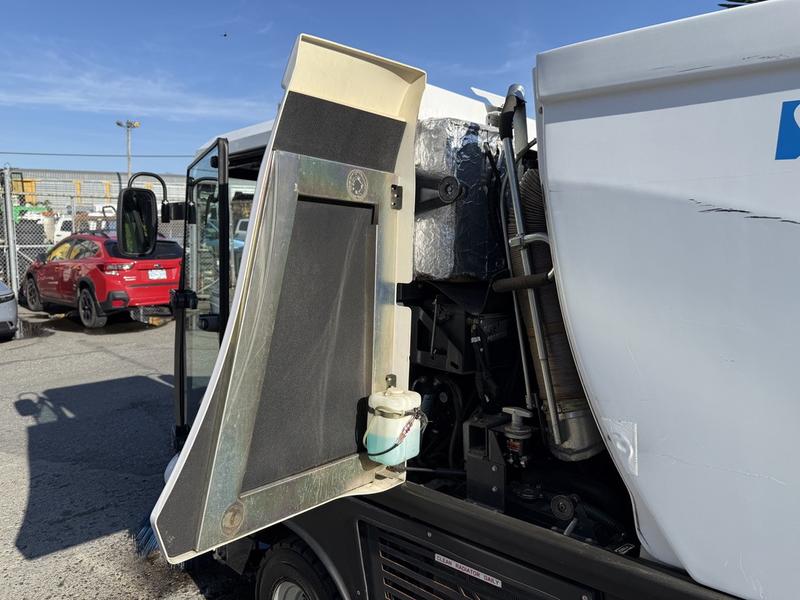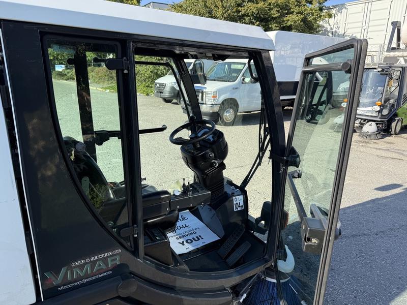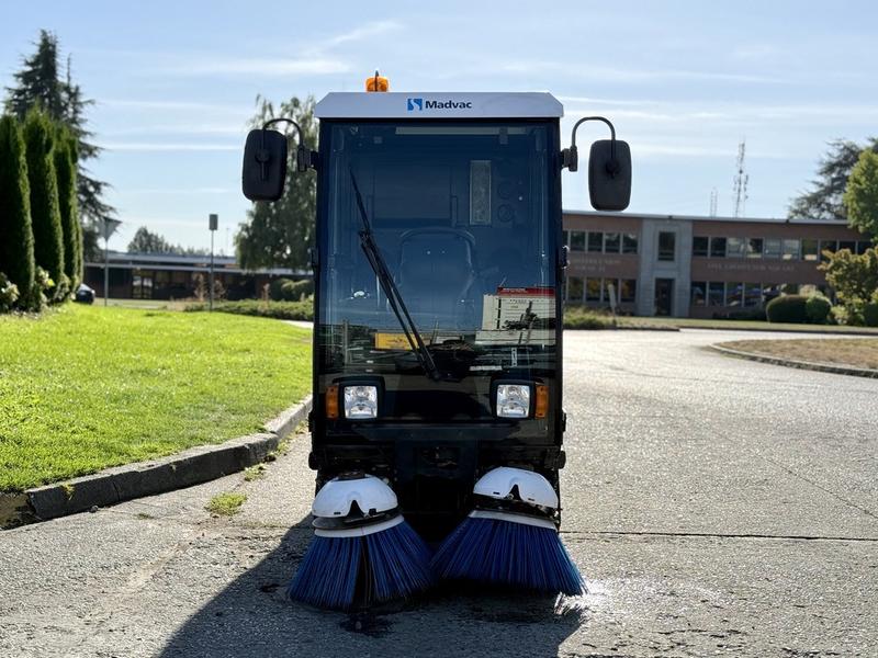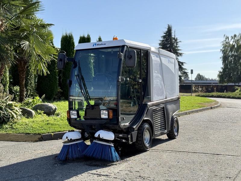 2017 Madvac LS100 Compact Sweeper, 3.0L, 2 door, automatic, FWD, white exterior, black interior, vinyl. Equipped with a Kubota D1105T turbo motor producing 31.5 HP, front-wheel steering, dual front sweepers, 30-inch water gauge, battery switch, backup camera, and cup holders. 981 hours. Overall vehicle measurements: 147" L x 43" W x 78" H.