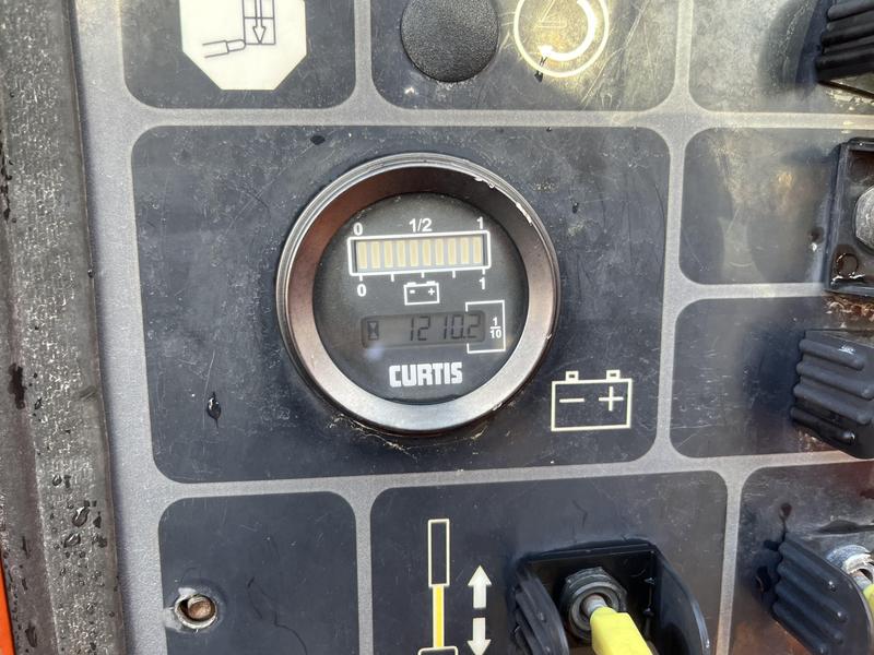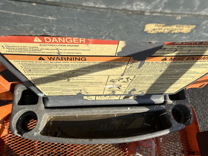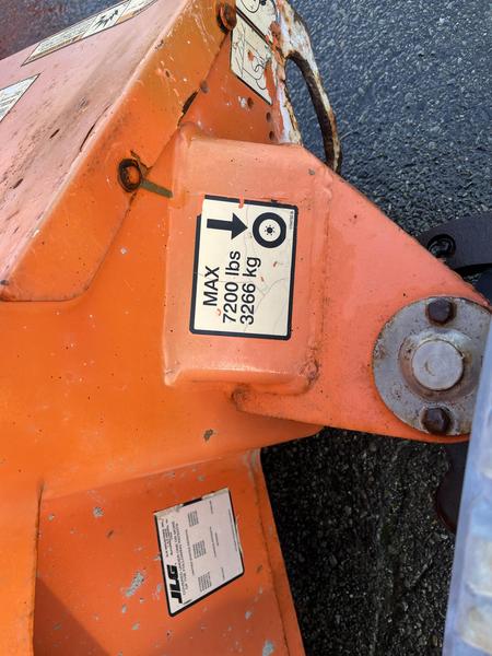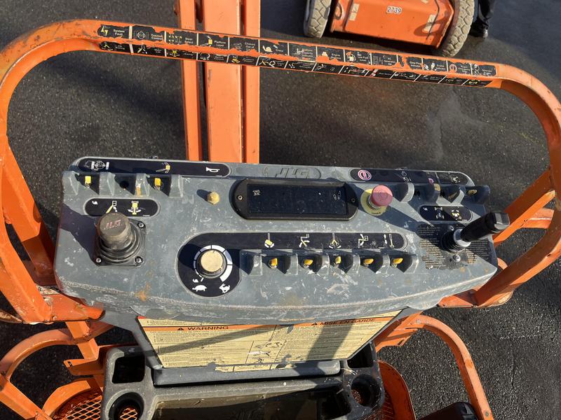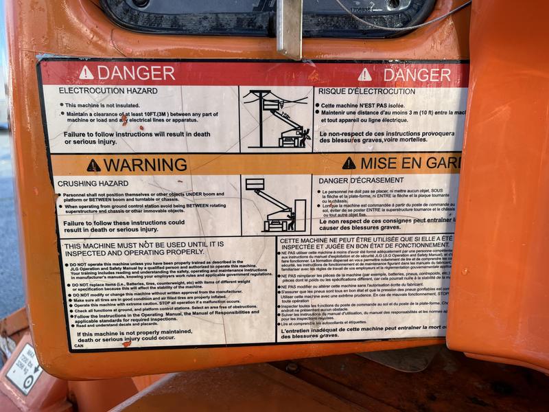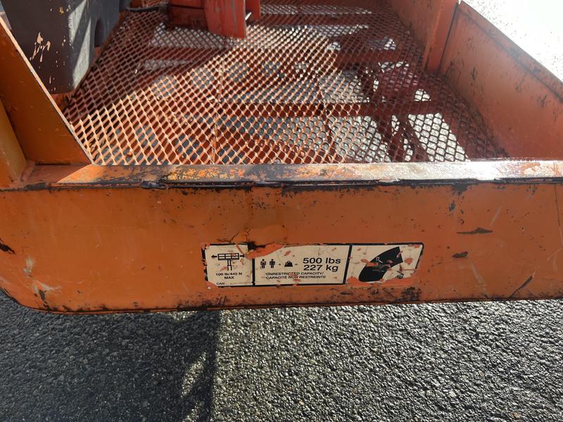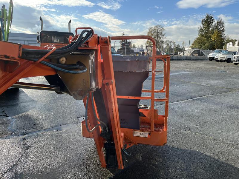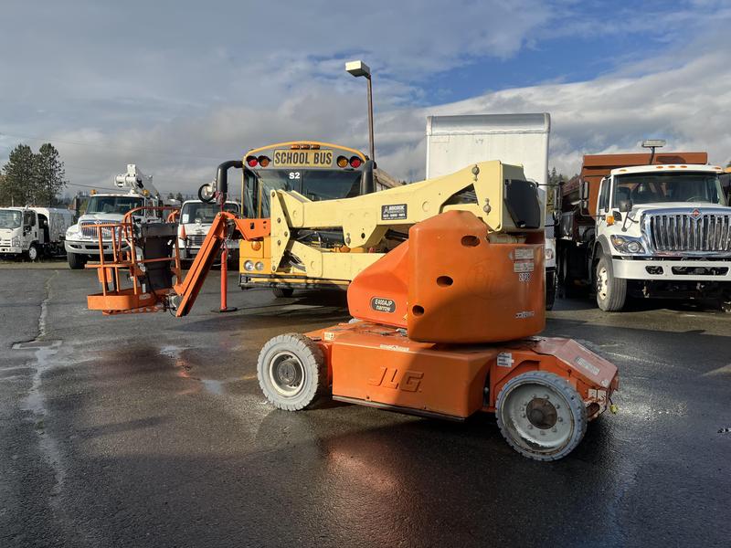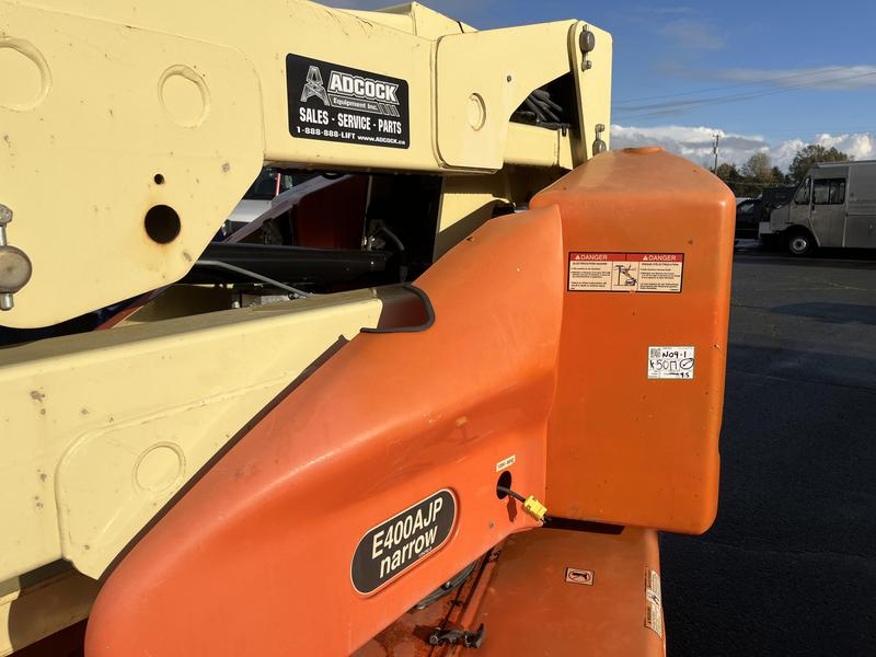 2012 JLG E400AJFN Boom Lift, Electric, orange exterior. Platform Height: 40 Foot