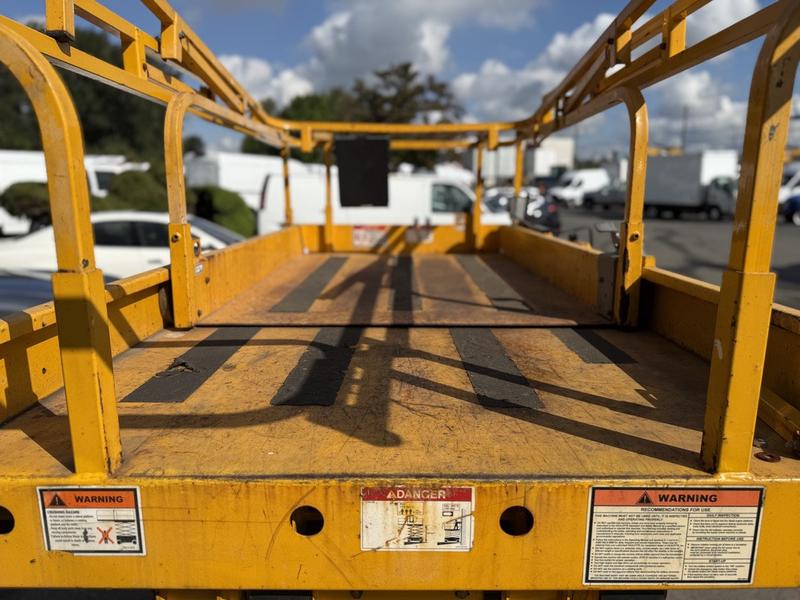 2013 Haulotte Compact 3947E electric scissor lift offering a working height of 44 ft 11 in and a platform height of 38 ft 11 in. Powered by a 24V electric system and rated for a maximum lift capacity of 770 lb. Platform extends to 10 ft 7 in by 3 ft 11 in, with an overall width of 3 ft 11 in and overall length of 8 ft 2 in. Operating weight of 7,236 lb. Finished in yellow. Ideal for indoor and outdoor maintenance, installation, or construction tasks.