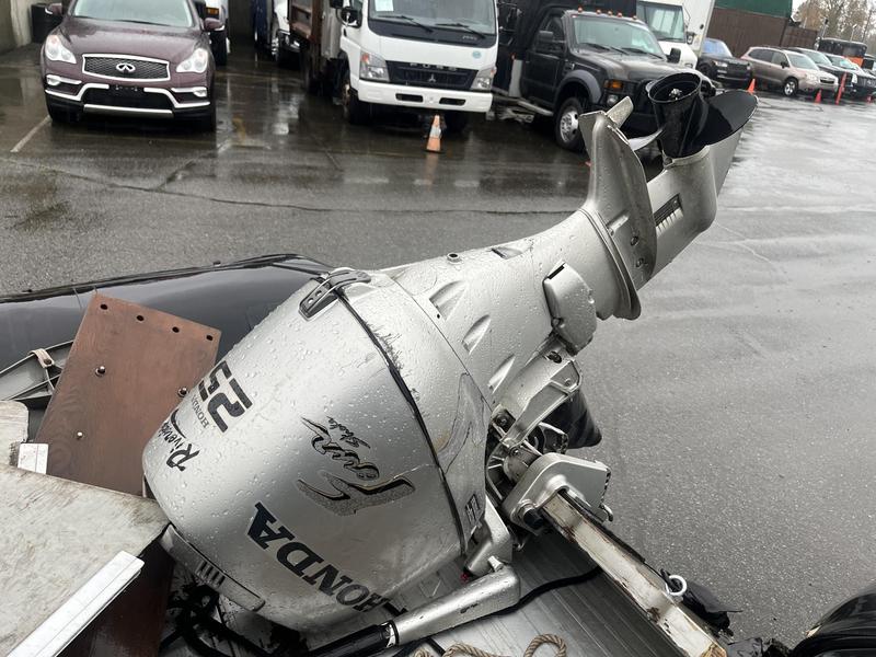 2009 SHORELANDER SLB12/14 BOAT TRAILER, BLACK, VIN 1MDA5XP189A419866, HAS REGISTRATION FOR TRAILER, TRAILER MAX CAPACITY 1200LBS, BOAT NEEDS WORK, ROUGH CONDITION COMMANDO C5 NO 31K 114970 BOAT, BOAT ENGINE 1997 B25, RATED POWER 18.4KW, MASS 67KG, ENGINE HONDA OUTBOARD MOTOR 25HP 4 STOCK, SERIES 3887, TRAILER TONGUE LENGTH 9', TOTAL TRAILER LENGTH 19' WIDTH TIRE TO TIRE 7'10", 2" BALL, Motor running condition unconfirmed