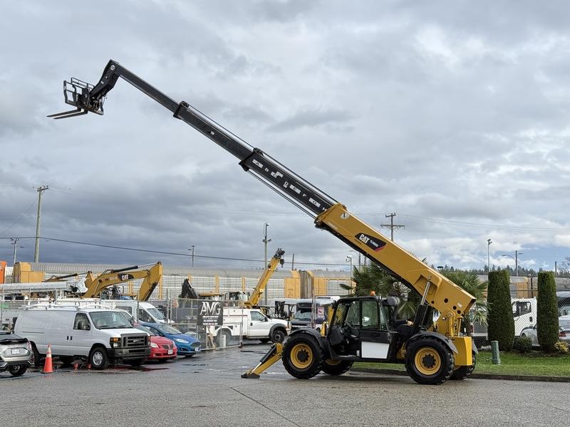 This 2014 Caterpillar TL1055C telehandler offers powerful lifting performance with a 10,000 lb capacity and a maximum lift height of 55.1 feet. It also provides a maximum forward reach of 42.5 feet, making it ideal for extended reach jobs. Equipped with a Cat C4.4 ACERT 142 hp diesel engine, 4x4 drive, powershift transmission, frame leveling, auxiliary hydraulics, and a quick-attach coupler. It can handle 5,000 lb at full height and 2,500 lb at maximum reach (with outriggers down). Suitable for tough construction and material handling applications. Located in Burnaby, BC. Approx. size: 26'6" L x 8'4" W x 8'4" H.
