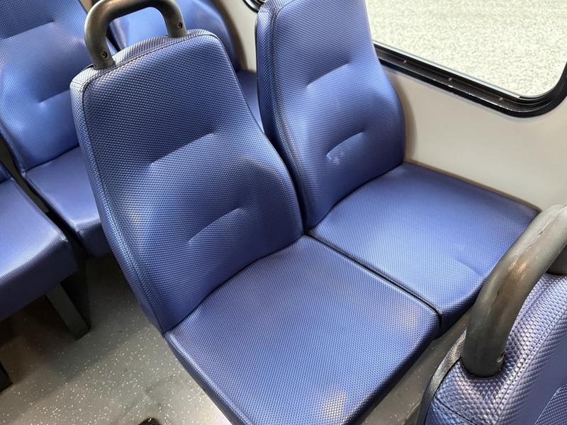 This 2020 Chevrolet Express 4500 22-passenger bus is equipped with a 6.0L 8-cylinder engine, automatic transmission, rear-wheel drive, cruise control, air conditioning and heat, AM/FM radio, and a vinyl blue interior with a grey exterior. It includes a wheelchair ramp, master body switch, cup holders and seating for 22 including the driver. The overall length is approximately 20 feet 3 inches, width 6 feet 5 inches and height 7 feet, with a GVWR of 6,441 kg (14,200 lb).